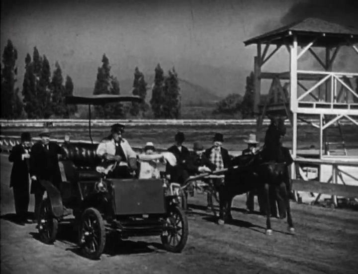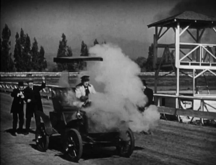 The film’s race car-loving son, the 31-year old Charles Emmett Mack, was driving to set one day, to film the climactic racing scene, however, on his way he was killed in a car accident. The irony is so obvious and tragic it hardly needs to be elaborated. The film plays around with ideas of progress, but also sincerely tries to be cautionary; reality was apparently not so reserved with it’s cautionary tale. It’s important to remember just how dangerous cars really are, and how genuine of a concern people had when they were first being introduced. While it may seem amusing to us now, just as it was then, how quaint the resistance to the automobile was, but maybe we are too quick to assume that this change needed to happen, and that we’re somehow truly better off for it.