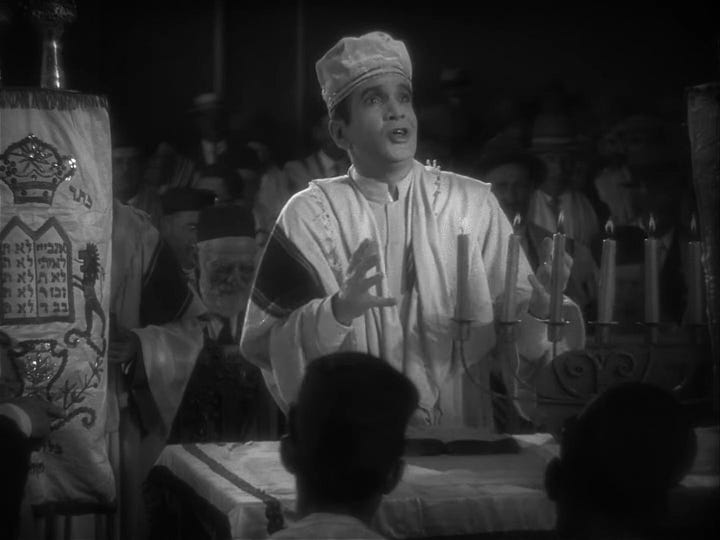 So, in an ironic twist, we are likely to side with the father here. Because he really is abandoning his family for something we’re not likely to see as noble, something that we’re more likely to see as genuinely morally debased. So the role of the young, hip, liberal artist in this story becomes flipped on his head. He engages with a practice which alt-right, white nationalist types like to point to as a “lost art”, that of minstrelsy. But, in a further ironic layer, this film is surely not to be embraced by the modern alt-right (in the way that something like Birth of a Nation is) due to it’s positive depiction of Judaism, particularly the triumphant ending, where the leading man has his cake and eats it too… Just after his “acclaimed” minstrelsy performance he goes and performs as a cantor at the Day of Atonement service at the synagogue while his father finally comes to approve of his son’s art on his deathbed. The simultaneous embrace of something modern culture sees as deeply immoral and racist, as well as of something old-fashioned yet opposed to white nationalist values, makes the film’s place in history even more complex than it may first appear.