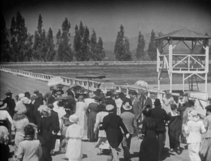 The inaugural event of motion picture film is usually considered to be the Muybridge series of photographs, “The Horse in Motion” (although if you read my previous post, you’ll know the origin story is more complex). In the metaphorical terms of this paper, this perfectly represents the beginning of the silent film era, while also capturing the essence of horse racing.